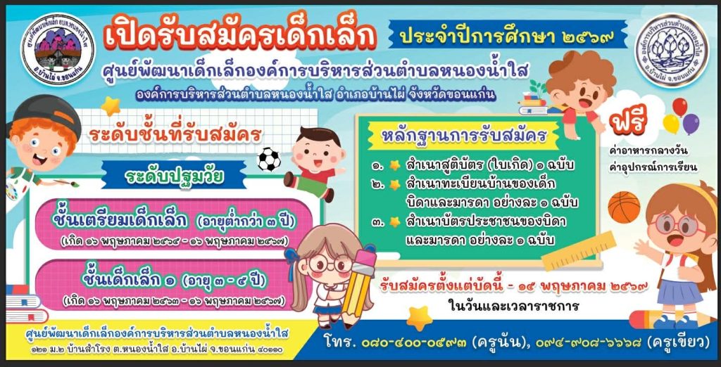 โครงสร้างขององค์กร คณะผู้บริหาร สมาชิกสภา หัวหน้าส่วนราชการ สำนักปลัด กองคลัง กองช่าง กองการศึกษาศาสนาและวัฒนธรรม ศูนย์พัฒนาเด็กเล็ก ทำเนียบผู้นำชุมชน ผู้ดูแลระบบเว็บไซต์ ข้อมูลข่าวสาร เว็บไซต์กรมส่งเสริมการปกครองส่วนท้องถิ่น ระบบเบี้ยยังชีพ อปท. ระบบบันทึกบัญชีท้องถิ่น e-lass ดาวน์โหลดแบบฟอร์มเอกสารราชการ สรุปข้อมูล อปท. ทั่วประเทศ INFO ระบบข้อมูลกลางองค์กรปกครองส่วนท้องถิ่น ระบบการประเมินคุณธรรมและความโปร่งใส (ITA)คำขวัญประจำตำบลหนองน้ำใส